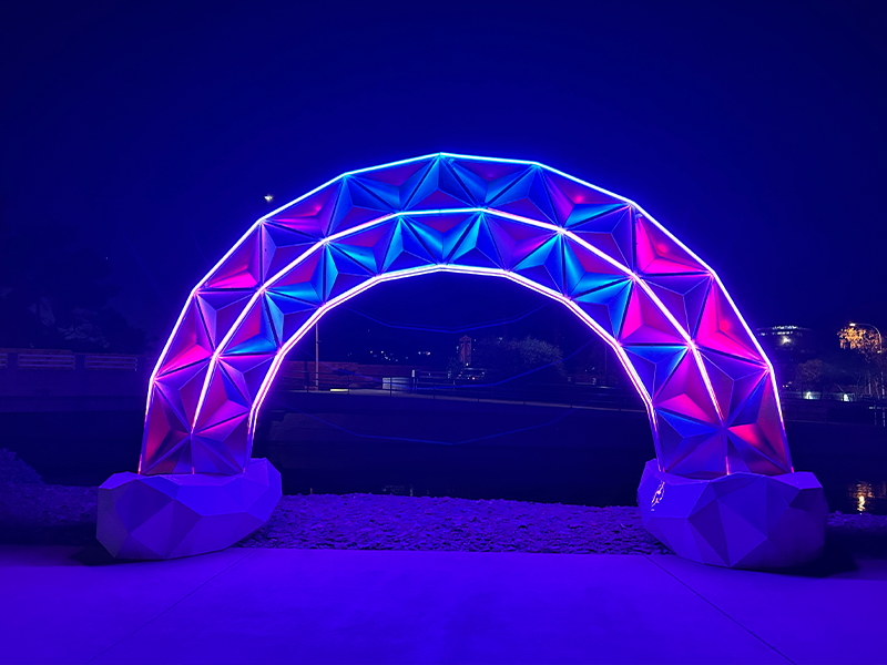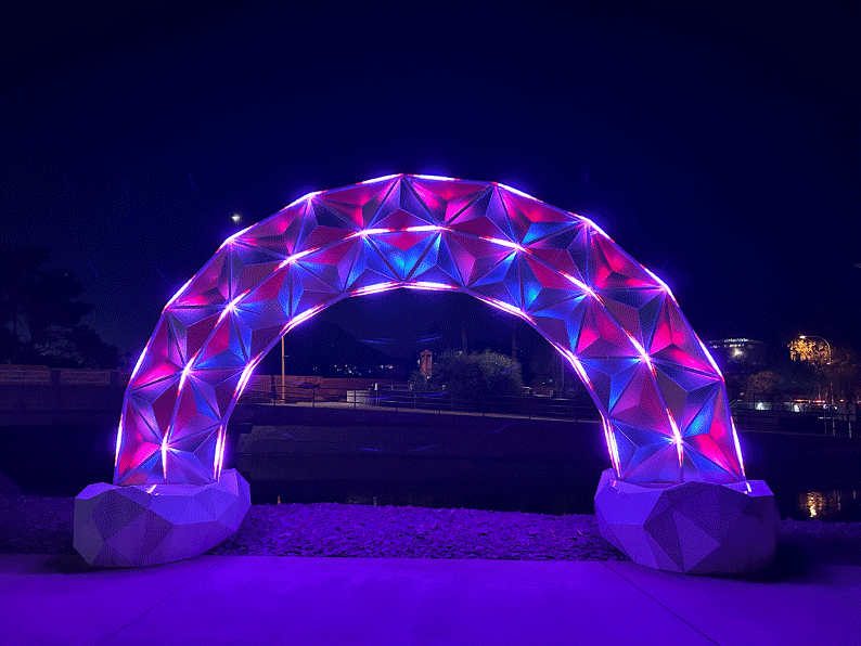 In Theory Art Studios is a group of artists based in a Huntsville, Utah, studio. They have exhibited their works across the United States at festivals, cultural gatherings, museums, and in public spaces. In Theory Art Studios are the recipients of a number of awards and grants from The Land Art Generator Initiative, Salt Lake City Arts Council, Burning Man's Honoraria Grant Program and others. Currently, their artworks are on display throughout the United States, from Los Angeles to Salt Lake City, Houston, and Miami. In Theory Art Studios’ sculptures employ innovative materials to produce iconographic forms recast with intricate geometries and optically dichroic (iridescent) materials that come alive through interplay with natural and digital light.