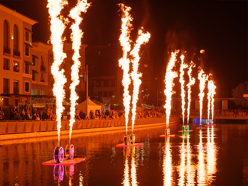 Walter Productions has been delivering experiential artistic entertainment for more than a decade and is best known for its fleet of art cars, led by Walter the Bus. Much of that time has been spent touring across the country, producing numerous events across the nation for companies like SpaceX, Google, Twitter, and Zappos, as well as festivals for Live Nation, Superfly, and Insomniac. Now the team is putting down deep roots in Arizona. Since 2009, Walter Productions has been part of the Scottsdale art scene, and the Walter family of companies includes the 501c3 not-for-profit Walter Hive, Walter Station Brewery, the Where?House, and Walter Studios. This is the seventh consecutive year Walter Productions has brought art, fire, and lights to the Scottsdale Waterfront for Canal Convergence. Walter Productions first exhibited at Canal Convergence in 2018 with Floatus and has returned each year with a new artwork: Water Serpent in 2019, Information Flow in 2020, Floom in 2021, ORB in 2022, Flario in 2023, and Fireflection in 2024.