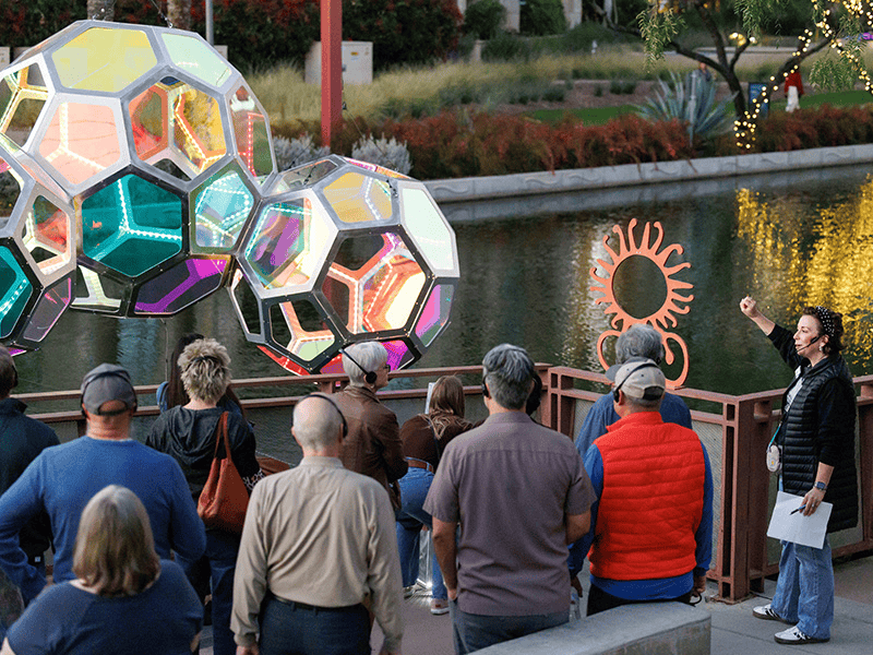 Tours at Canal Convergence provide a more in-depth festival experience. The daily Art Tours, led by Scottsdale Arts staff, visit each of the artworks and offer fun facts about the installations and their creators. The Canal History Tours are led by staff from the Salt River Project (SRP) and reference the long legacy of canals in the Valley of the Sun and their impact on our lives. All tours require prior registration. The daily Art Tours are $6 while the Canal History Tours are free with RSVP.