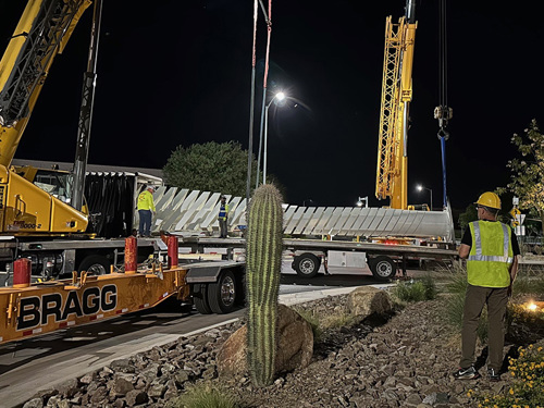 Phillip K. Smith III: I’m a believer that all projects happen when they are supposed to happen—both when they are conceived and when they are actually fabricated and brought into reality. I was originally commissioned for this project back in 2014. In a short period of time, I developed the artwork concept and had the project fully structurally engineered and integrated into the overall landscape and street plan for the site in north Scottsdale. Then, as infrastructure projects tend to do, there are ups and downs and a good bit of waiting. In this case, it was about ten years. Even with this time differential, I am as excited about the project now as I was in 2014.